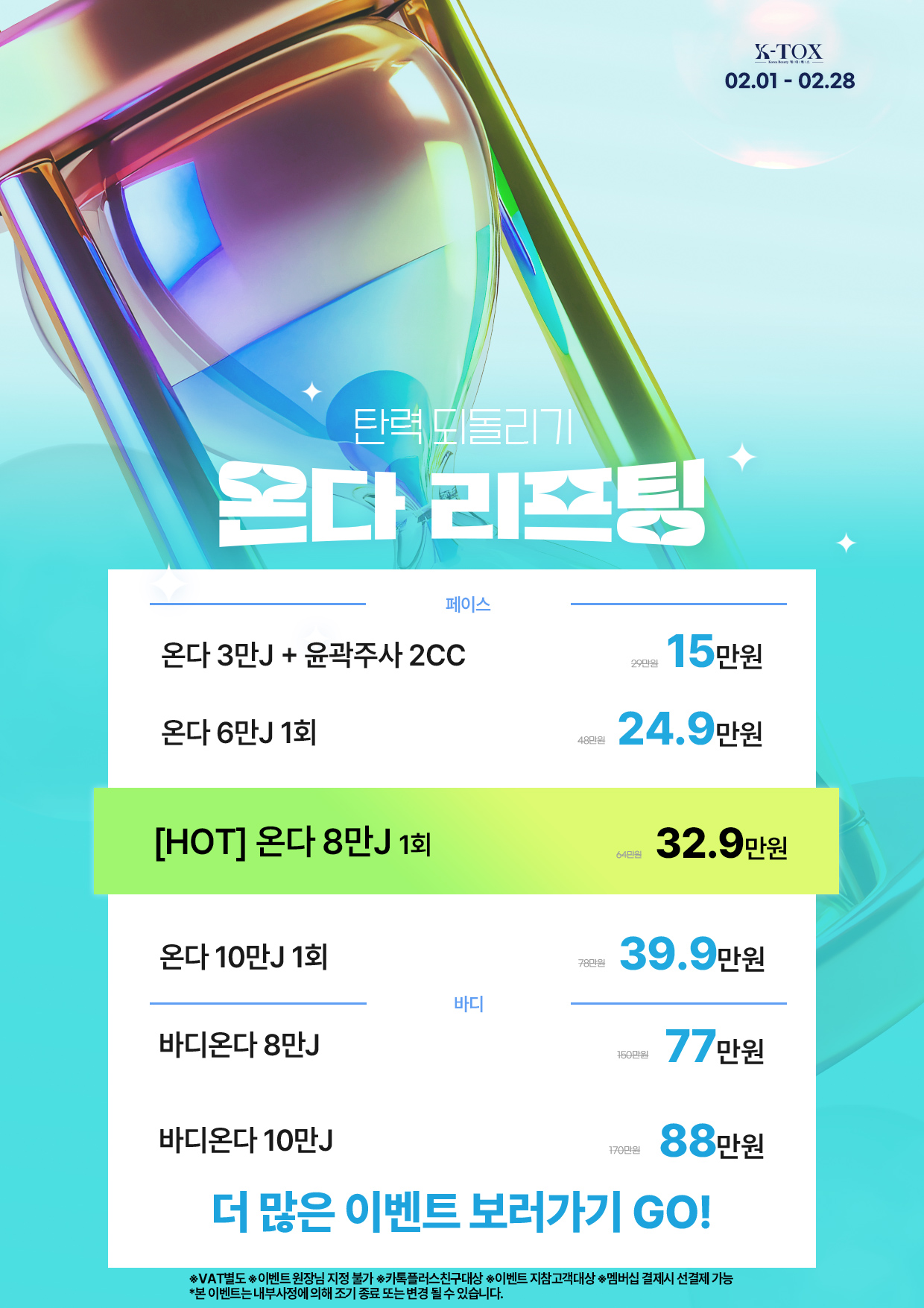 • 1:1 맞춤 분석과 최적화된 계획으로 가장 자연스럽고 아름다움을 찾아드립니다.